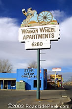 Though not a motel per se, the sign for the Wagon Wheel Apartments is worth a mention on this page.