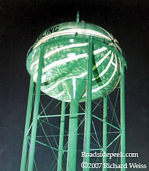 This huge Watermelon Water Tower is actually the water tower for Luling, TX. This watermelon looks quite imposing in this night shot. 02-07