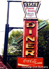 Enjoy a visit to a diner located in Ithaca, NY. The State Diner features vintage signage, and presumably vintage food too.
