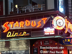 The Stardust Diner features great neon lettering, somewhat reminiscent of an old Vegas classic that's soon to be leaving us forever. The Stardust is a great stop after seeing a play on Broadway, featuring singing waiters/waitresses serving heaps of food. And who knows, you may see the person serving you may be hitting it big on Broadway soon after your meal. 01-07