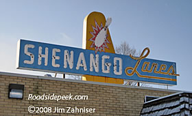 UPDATE 12/08 : The Shenango Bowl-A-Way also features a eye-catching sign on the bowling alley building. Many thanks to Jim Zahniser for update photos and info. 12-08