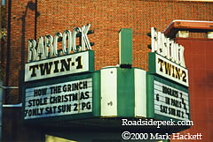 Here's the theatre marquee for the Babcock Twin Theatre in Wellsville,