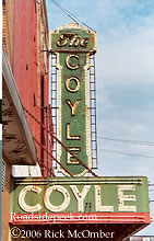 Here's the blade marquee for the Coyle Theatre of Charleroi, PA. Built in the early 1900's, the theatre closed down in 1999. Word is there is work underway to restore this theatre. 06-06