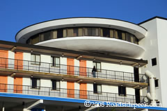 The Royal Hawaiian is a large complex with the Polynesian theme. The Royal Hawaiian features lava rock walls as well as a large space port looking structure on top of the building. 03-08