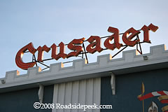 Here's a shot of the Crusader from across the street. From this view, you can see the rooftop sign and the emblems on the building itself.