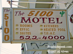 Wildwood, NJ is home to the 5100 Motel. This motel features a sign that advertises all of its luxuries such as kitchens and heated pool. 03-08