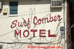The Surf Comber Motel is located along Atlantic Avenue in Wildwood. The motel has neon lettering on the building wall as well as a nice colorful backlit plastic sign out front. 03-08