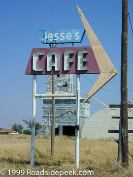 West of Amarillo and off of Route 66 the Texas town of Vega. Follow the arrow on this marquee and check out Jesse's Cafe. 08-06