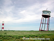 Travelers passing by this Britten Tower for the 1st time usually do a double-take. Yes, the tower is leaning to the side. Is this tower leaning due to something gone wrong with the land or is it a marketing ploy to grab curious travelers off the interstate? You'll need to see it up close to find out. 08-06