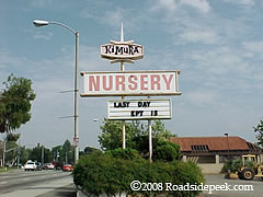 UPDATE 12/08 : Here's another shot of the old Kimura Nursery sign off of Route 66. Off to the left of the sign are cars traveling down the Mother Road. This section of the 66 is full of strip malls these days. 12-08